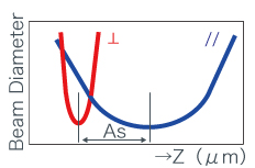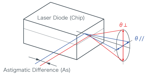 For laser diodes, the apparent focal positions are different in the horizontal direction and the direction perpendicular to the junction. The distance between these two focal points is defined as the astigmatic difference (As).